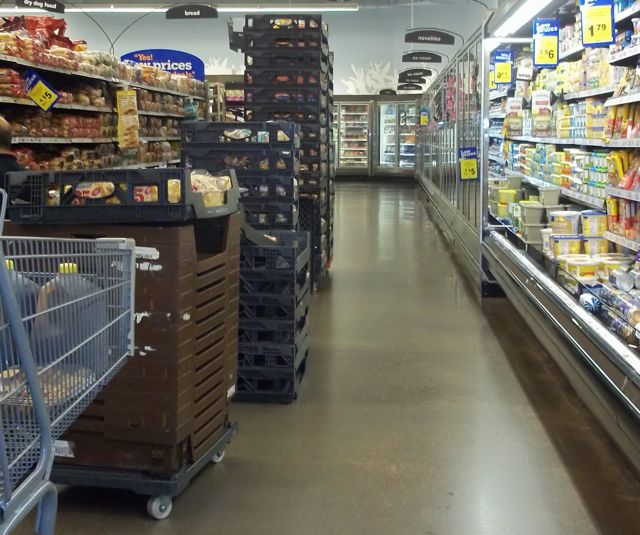 Some aisles are blocked so I can't maneuver through them. While I can get past the two shopping carts below, those two big carts at the end of the aisle are a challenge.