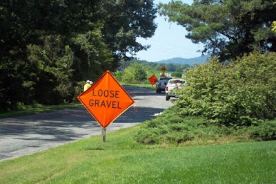 My husband drove me "around the block" this evening to see what they'd done beyond our property. Just down from us is what used to be a dairy farm. The pipeline will cut through this property. The signs are on the other side of the road to warn the few folks who live down that way of "road work," etc. as if they couldn't already see it.